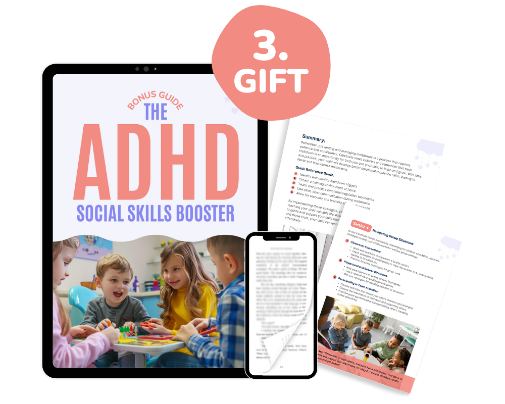 • PLUS 5 FREE gifts that address your most pressing ADHD parenting challenges (total value of $184).